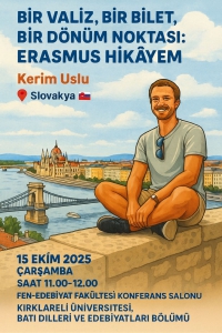 ![]() | BİR VALİZ, BİR BİLET, BİR DÖNÜM NOKTASI: ERASMUS HİKAYEM 16/10/2025 42 Okunma Bölümümüzün ilk Erasmus deneyimi yaşayan öğrencisi Kerim Uslu, Slovakya’daki deneyimlerini... |